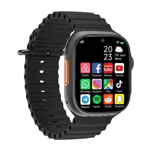 FE Bolt Smart Watch with 4G/5G SIM AMOLED Display, Video Calling, 4GB+64GB Storage , 49 mm for Men & Women- Black Strap