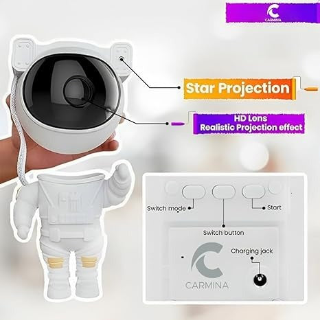 Galaxy Astronaut Star Projector Night Light – 360° Adjustable Lamp with Remote & Timer | USB Powered Space Light for Kids, Bedrooms & Parties